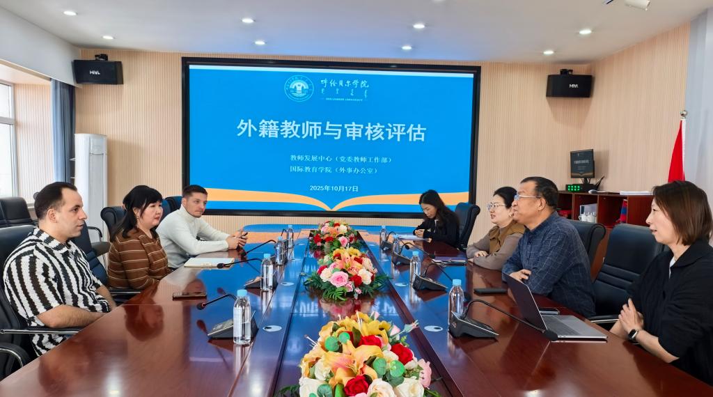 为扎实推进本科教育教学审核评估工作,保障教学秩序平稳运行,同时加强外籍教师队伍建设,10月17日,我校在国际教育学院(外事办公室)六楼会议室,组织召开了外籍教师与审核评估专题座谈会。本次座谈会由教师发展中心(党委教师工作部)与国际教育学院(外事办公室)联合举办,邀请外国语学院乌宁老师作为主讲翻译,全体外籍教师参会。